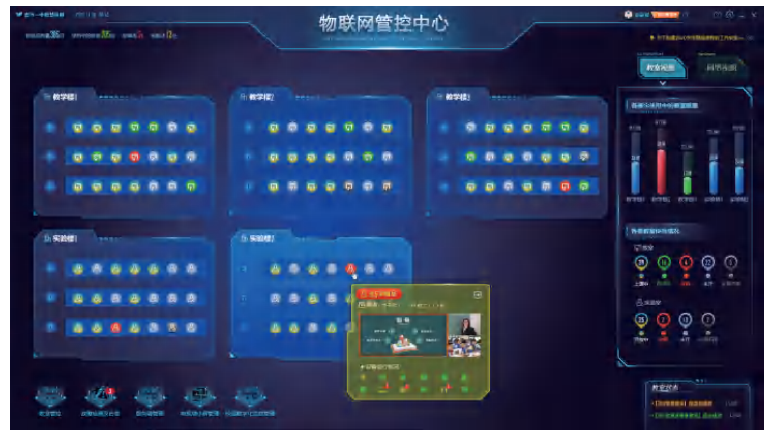 物联网管控中心是智慧校园信息数据指挥中心的物联网管理子平台,它覆盖并联通了所有智慧教室、传统教室、网络中心以及各教、学、管应用中心等,是打通所有学习终端设备、教学辅助设备、常规设备的一体化管理平台,实现了对智慧校园的各类教室、校园网络、设备资产的可视化呈现和统一管理,融合设备远程控制、设备故障智能诊断、设备故障统计等,最终实现校园设备跨校区、跨网段、多院系、多教学场景的统一监控和管理 。